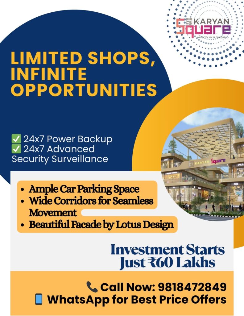 Whether you’re looking to start a business, expand your retail footprint, or simply enjoy strong rental income, commercial shops in Karyan Wave City offer one of the best opportunities in NCR today.