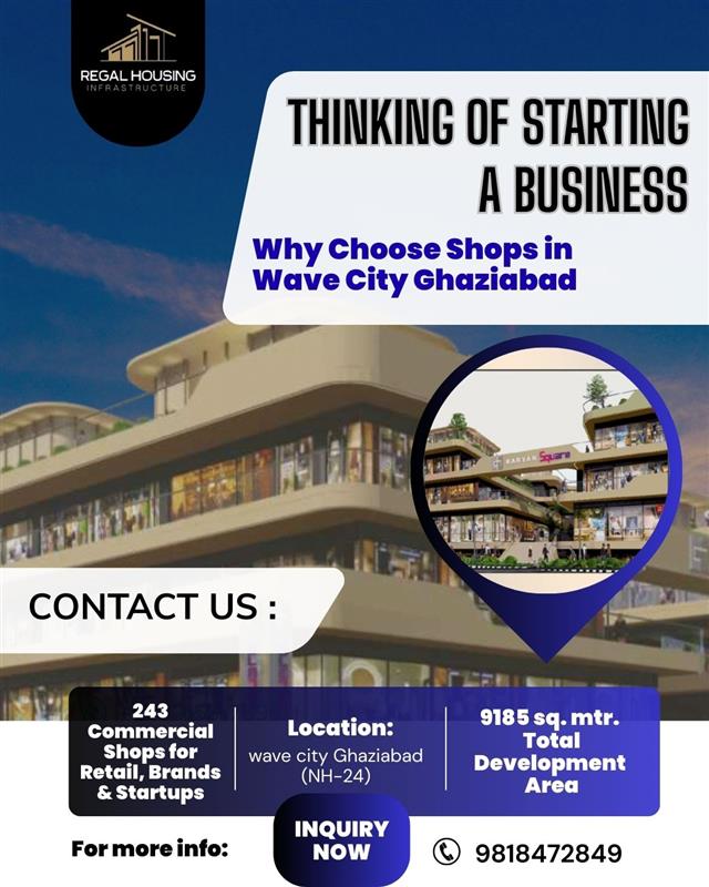📞 Contact Regal Housing Infrastructure at 9818472849 today to book your commercial shop in Wave City and secure a profitable future for your business.